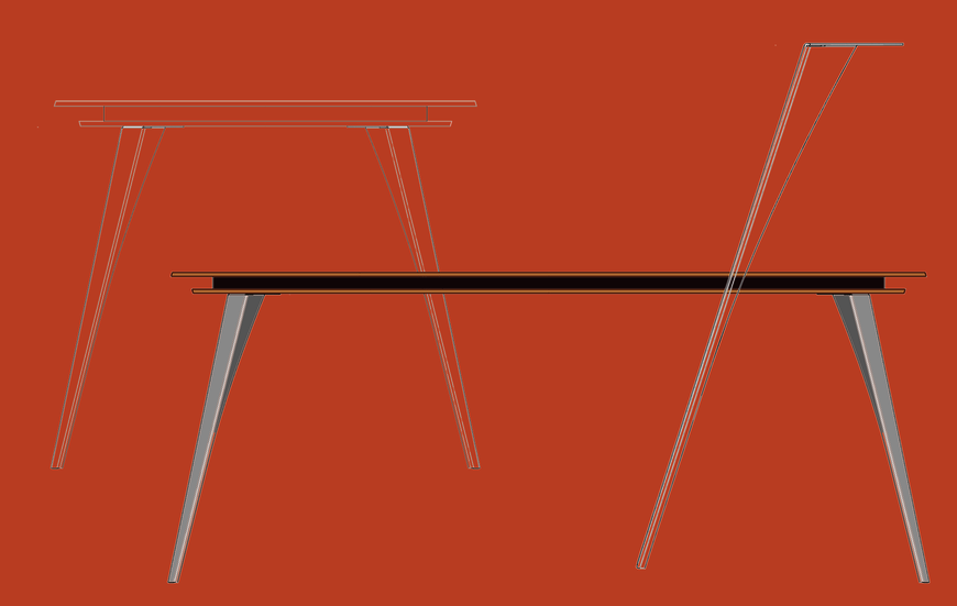 zwei dünne bootsbauplatten und feingliedrige beine verleihen dem tisch seine leichtigkeit